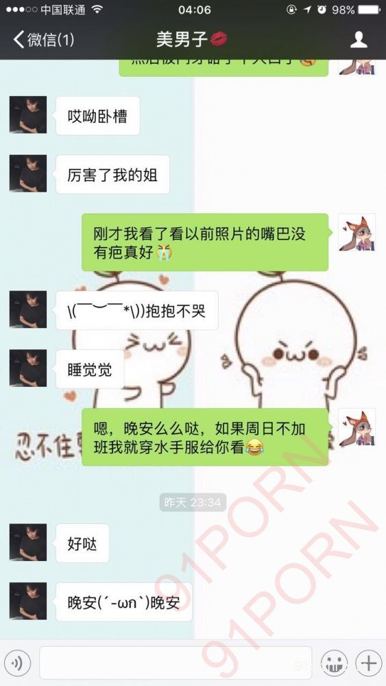 我和对象是15年认识的,认识了一个星期就去她家把她上了,本来没觉得会怎么样,结果插进去后异常的紧!去年的时候忙着工作,她夏天待业在家,没怎么好好交流过,每天回家吃了饭就睡了,十月份的时候她找到个行政工作,做前台,结果刚上班没一个月就认识了一个技术部门的,刚开始打情骂俏的,后来十月中旬,我对象来大姨妈了,晚上跟我说想去朋友家睡,她朋友也在一个小区,我就让她去了,那天是周四,没发现什么,周末在家躺着没事,她去洗澡了,我就随手翻了下她手机,结果发现了她俩的聊天记录。